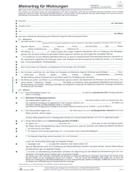 RNK Mietvertrag für Wohnungen ausführlich A4 | mcbuero.de from cdn.mcbuero.de Füllen sie alle geforderten angaben über vermieter und mieter des objekts aus. Hier erklären wir ihnen, welche punkte ein mietvertrag zwingend enthalten muss, was individuell verhandelbar ist und welche regelungen bei einer kündigung gelten. Vermieter verwenden für mietverträge oft muster, die vorformuliert sind. Klassische mietverträge werden in der regel ohne befristung ausgestellt, das ende der mietdauer ist also nicht von vorn herein festgelegt. Schneller und kostengünstiger kann ein. §15 beendigung des mietverhältnisses 1. Muster für eine möblierte wohnung herunterladen und bei bedarf beliebig oft verwenden. Welche angaben gehören in den mietvertrag für möblierte wohnungen?
